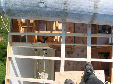 Roof framing from inside: The old galvanized roof covers the framing - you can see the detail better.