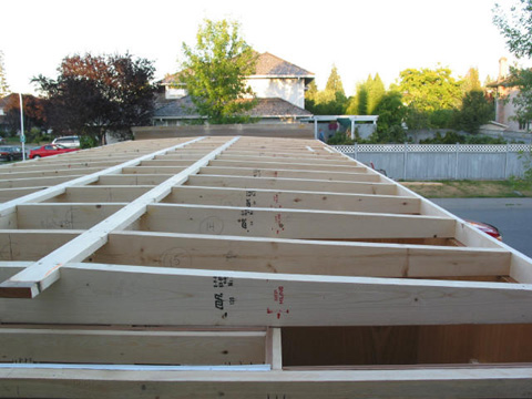 Roof framing: Low down shot to see the pitch of the roof better.