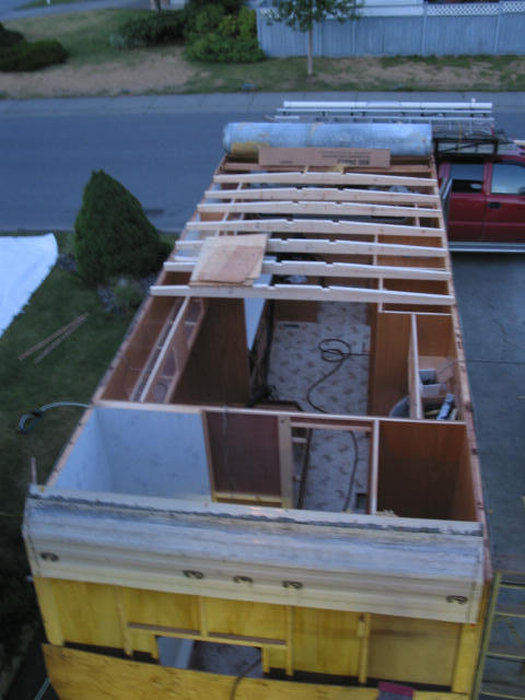 Out with the old: Old framing just before removal. An RV Rubber Roof can last for decades if installed and taken care of properly.