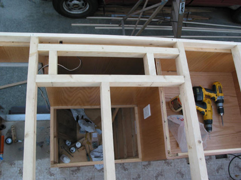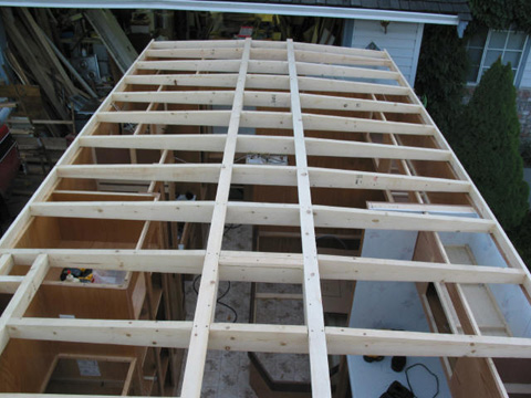 Roof framing: Another shot - Note the slope from the 1X3 runners down to the edge.