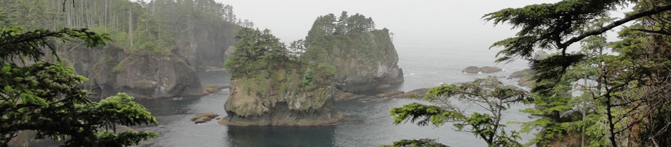 Above: View of Cape Flattery looking south. At two different times of the year you can see the humpback whale and the gray whales during their migration either going south to Baja or north to Alaska. Orca whales are more typically seen among the waters of Puget Sound and the San Juan islands.