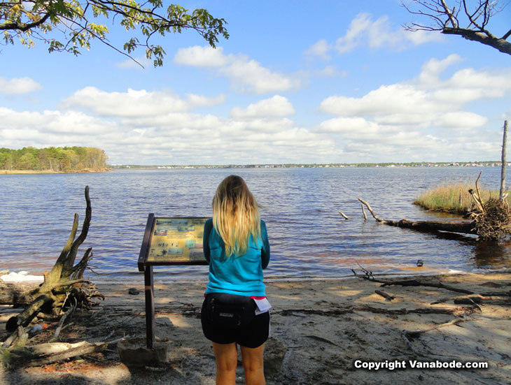 book from Amazon The 520-acre Cattus Island County Park is a rare bright spot thus far in our run up through New Jersey. We read all the historical information, use the portable toilets, and suit up for three miles of splendid hiking. Natural earth berm trails rise two feet up over the swamp, sandy beach, and forest floor meaning somebody somewhere was actually thinking at some point.