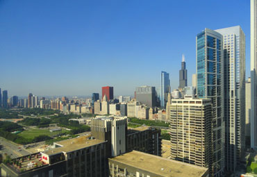 Above: Our road trip is winding down now. In Chicago I look out the forty-sixth floor window of our friends Max and Helen's skyscraper apartment. The incredible skyline hosts thousands of people in hundreds of condos and apartments as far out as I can see. For thousands of unforgettable experiences on this affordable