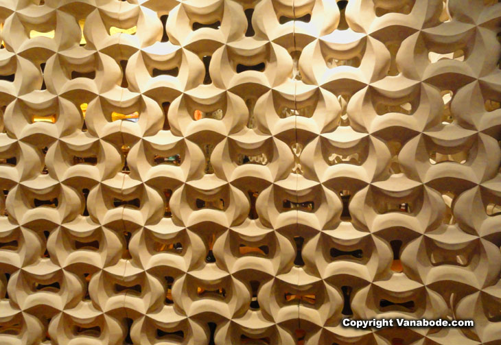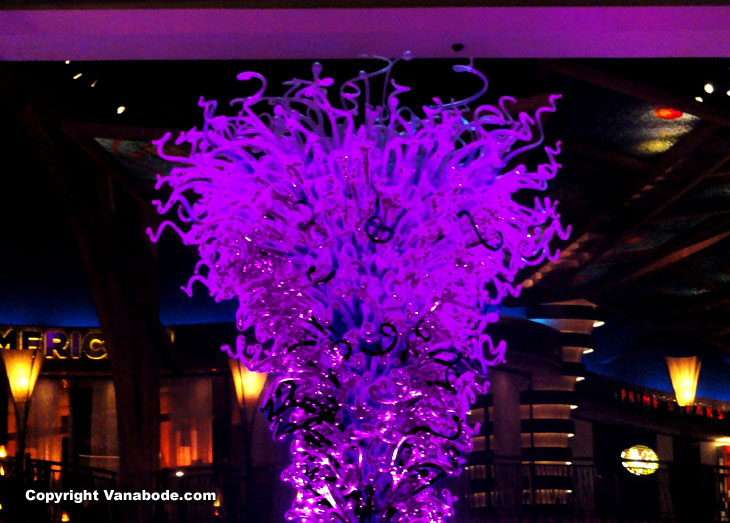 Above: Mohegan Sun chandeliers and art.