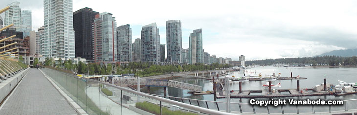 Above: Picture of downtown Vancouver's waterfront walkway. We parked the Vanabode at Stanley Park and then walked all the way to downtown to see the 2010 Olympic Cauldron at the Plaza. We were walking on a wide sidewalk the entire time. This busy city is very pedestrian friendly with many ways to enjoy the outdoors without being bothered by the traffic. Along the way were larger than life statues and sculptures, benches, and the very appreciated restroom.